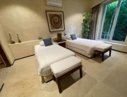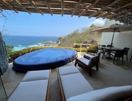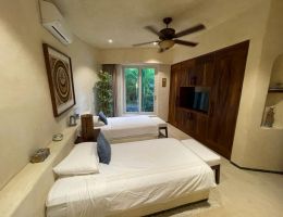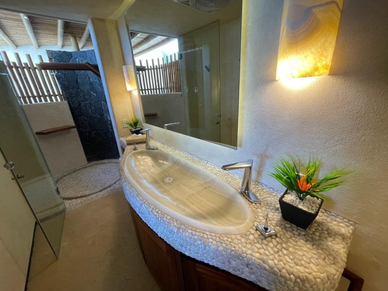 DESCRIPCIÓNÃmbar es un exclusivo y sofisticado desarrollo de 23 departamentos, este condominio está ubicado entre la exuberante naturaleza, impresionantes acantilados y la hermosa vista que ofrece hacia el mar, el departamento cuenta con 3 recámaras y 3.5 baños jacuzzi, cuarto de lavado, cocina totalmente equipada, traspatio , finos acabados de madera y detalles de piedra en todo el condominio y una decoración exquisita, el complejo de departamentos incluye una torre elevador que lleva al área de la playa que cuenta con un área de restaurante, asoleadero, alberca para adultos y otra alberca para niños, transporte interno, seguridad 24 horas.