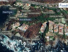 DESCRIPCIÓNDescubre el lujo frente al mar en este exclusivo Penthouse en venta en FINESTRE, uno de los desarrollos más privados y sofisticados de Ixtapa-Zihuatanejo. Con más de 7 hectáreas de naturaleza, acantilados y solo 36 residencias, este oasis ofrece una experiencia inigualable. El penthouse cuenta con 794 m² de terreno y 552 m² de construcción, distribuidos en dos niveles con 6 recámaras, cuarto de servicio, elegantes pisos de mármol Moonstone Cream, cocina con cubierta de granito blanco Cristell, espacios amplios y muy iluminados. Disfruta de espectaculares vistas desde sus balcones y terrazas, además de una alberca privada y jacuzzi. Todo con documentación en regla y listo para escriturar. El desarrollo ofrece amenidades de primer nivel: gimnasio, albercas, club de playa con restaurante y chef privado, canchas de tenis y pádel, club infantil, centro médico, área de kayaks, dos playas privadas y un espectacular andador panorámico junto al arrecife. No dejes pasar la oportunidad de vivir en un entorno natural, exclusivo y lleno de confort.